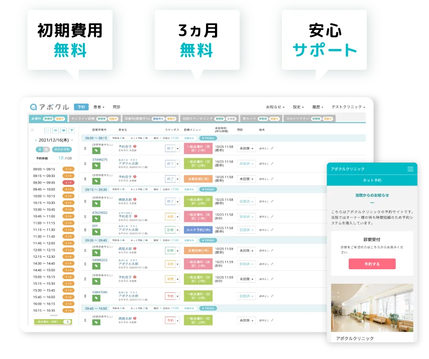 アポクル予約ペットは、時間帯予約・順番待ち予約を選んで使える動物病院様向けのネット予約システムです。
